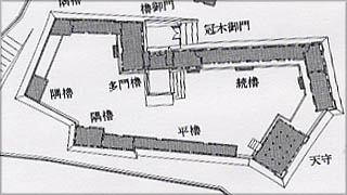 正保の城絵図が塁線を全て多聞櫓で取り巻いているのとは異なり、一部を塀としている。