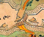 一つの門で4方向を一気に封鎖。両袖に多聞櫓を接続した特異な形式が活写されている。[国立公文書館所蔵]