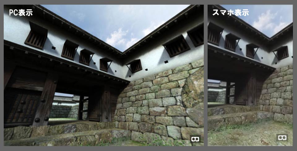 おまけにタテヨコ切り替えも自動、さらに、右下に表示される「VRアイコン」を押せば、VRゴーグル向けの表示にも切り替わります。こういった一連の機能の搭載が、PC版とスマホ版ともに同じコードでできてしまうのも、地味に優れたポイントだと思います。